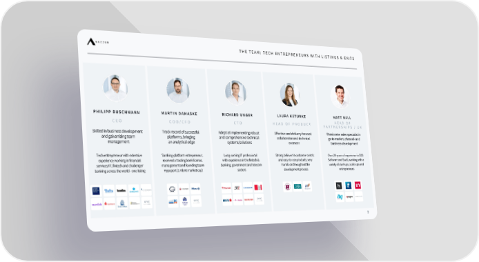 THE TEAM: TECH ENTREPRENEURS WITH LISTINGS & EXITS HEAD OF PRODUCT LAURA KETURKE CTO RICHARD UNGER Strong believer in customer - centric and easy - to - use products, very hands - on throughout the development process Long - serving IT professional with experience in the fintech & banking, government and telecom sectors Adept at implementing robust and comprehensive technical systems/solutions Effective and delivery focused collaborator and technical overseer HEAD OF PARTNERSHIPS / UK MATT BALL Over 20 - years of experience in B2B Software and SaaS, working with a variety of start - ups, scale - ups and entrepreneurs Passionate sales specialist in go to market, channel - and business - development COO / CFO MARTIN DAMASKE Banking - platform entrepreneur, received a trading bank license, management and founding team Hypoport (2.4 bn € market cap) Track record of successful platforms, bringing an analytical edge CEO PHILIPP BUSCHMANN Tech entrepreneur with extensive experience working in financial services/IT, fintech and challenger banking across the world - one listing Skilled in business development and galvanizing team management 9