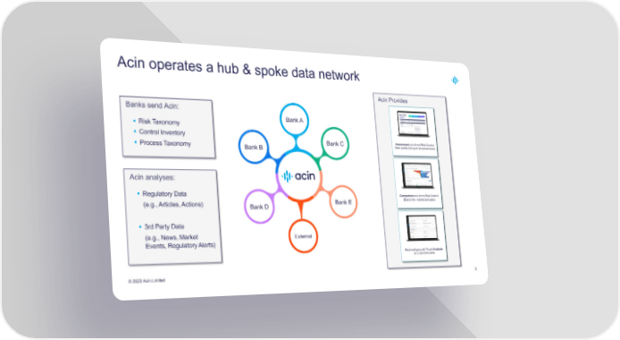 Acin operates a hub & spoke data network Acin Provides Banks send Acin: Bank A § Risk Taxonomy § Control Inventory § Process Taxonomy Bank B Bank C Acin analyses: § Regulatory Data (e.g., Articles, Actions) Bank D Bank E § 3rd Party Data (e.g., News, Market External Events, Regulatory Alerts) © 2023 Acin Limited 5