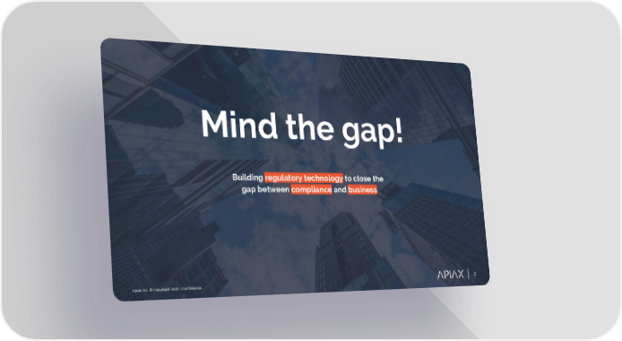 Mind the gap! Building regulatory technologyto close the gap between complianceand business Apiax AG © Copyright 2020 -Confidential 2