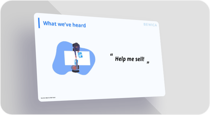 What we’ve heard “ Help me sell! ” Source: Bewica interviews