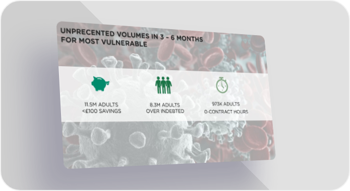 UNPRECENTED VOLUMES IN 3 –6 MONTHS FOR MOST VULNERABLE 11.5M ADULTS 8.3M ADULTS 973K ADULTS <£100 SAVINGS OVER INDEBTED 0-CONTRACT HOURS