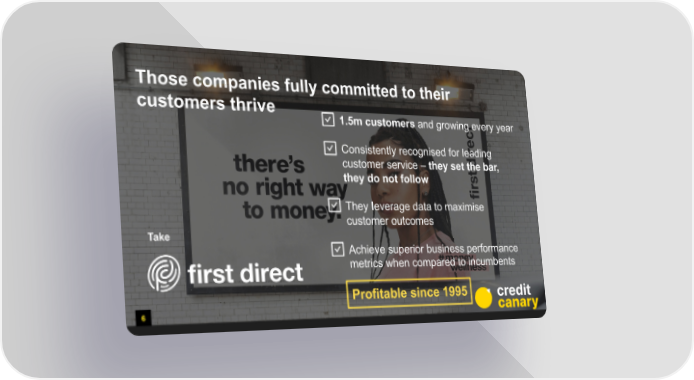 1.5m customers and growing every year Consistently recognised for leading customer service – they set the bar, they do not follow They l everage data to maximise customer outcomes Achieve superior business performance metrics when compared to incumbents Profitable since 1995 Those companies fully committed to their customers thrive Take 6