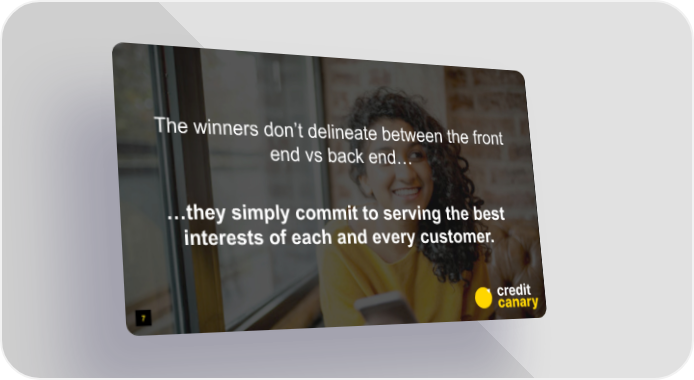 Credit Canary Pitch Deck Page 6 Page 8The winners don’t delineate between the front end vs back end... ...they simply commit to serving the best interests of each and every customer. 7