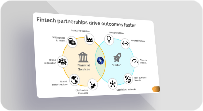Fintech partnerships drive outcomes faster Industry Expertise Disruptive ideas Willingness New technology to invest Brand Time to reputation Startup market Financial Services New Business Global Models Infrastructure Distribution Specialised networks Channels 2