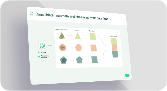 Mammoth Pitch Deck Page 4 Page 6Clean Transform Consolidate Clean Transform Consolidate No Code Transparency & Control Consolidate, automate and streamline your data fl ow 5 Messy / Disparate Data