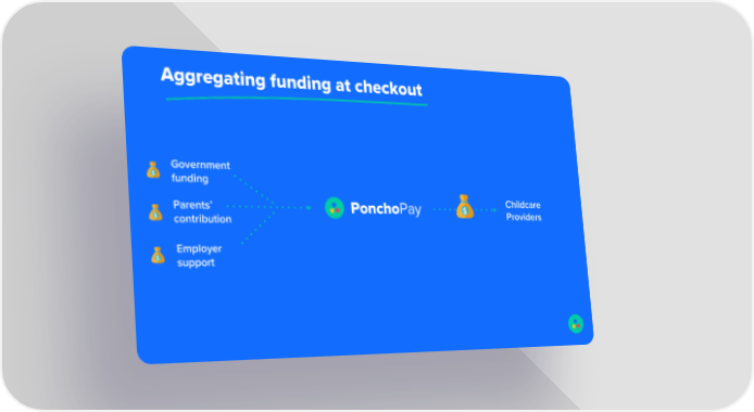 Aggregating funding at checkout Government funding Parents’ PonchoPay Childcare contribution Providers Employer support