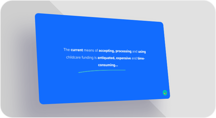 The current means of accepting, processing and using childcare funding is antiquated, expensive and time- consuming…
