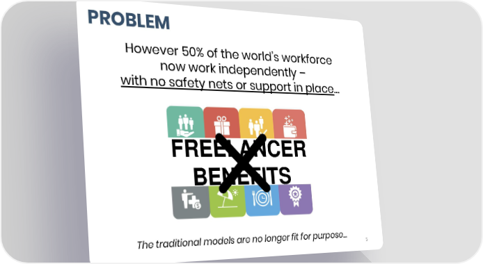 Portabl - Pitch Deck Page 4 Page 6PROBLEM However 50% of the world’s workforce now work independently – with no safety nets or support in place… FREELANCER BENEFITS The traditional models are no longer fit for purpose… 5