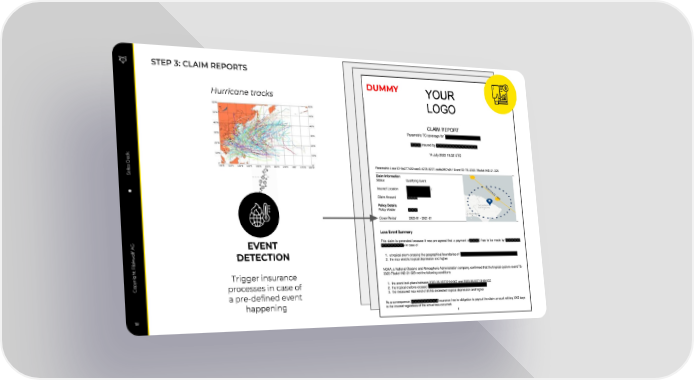 Riskwolf Pitch Deck Page 18 Sales Deck Copyright Riskwolf AG STEP 3: CLAIM REPORTS 19 EVENT DETECTION Trigger insurance processes in case of a pre-defined event happening Hurricane tracks DUMMY