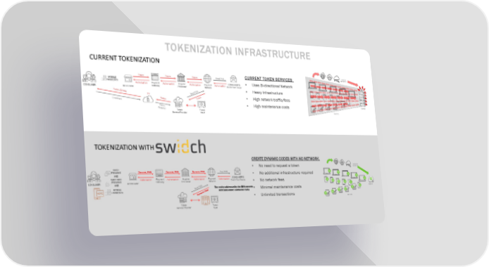 TOKENIZATION INFRASTRUCTURE CURRENT TOKENIZATION CURRENT TOKEN SERVICES: • Uses Bi-directional Network • Heavy Infrastructure • High network traffic/fees • High maintenance costs TOKENIZATION WITH CREATE DYNAMIC CODES WITH NO NETWORK: • No need to request a token • No additional infrastructure required • No network fees • Minimal maintenance costs • Unlimited transactions