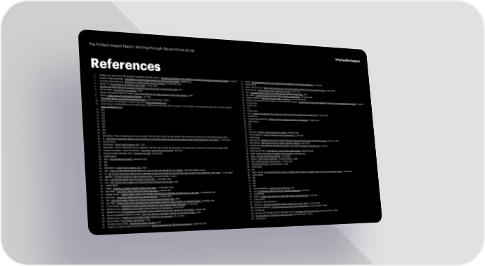 The FinTech Impact Report: Working through the world’s to-do list #FinTechforImpact References 1. Directive (EU) 2022/2464 of the European Parliament and of the Council, “Questions and Answers on the Adoption of European Sustainability Reporting Standards”, July 2023 53. EcoAct, “New developments to the CSRD: What are the implications for non-financial disclosures?", 14 July 2023 2. Financial Conduct Authority, “Sustainability Disclosure Requirements (SDR) and investment labels“, October 2022 54. Vested Impact 3. Financial Conduct Authority, “A strategy for positive change: our ESG priorities", 21 November 2011 55. World Economic Forum, “Nature Risk Rising: Why the Crisis Engulfing Nature Matters for Business and the Economy", January 2020 4. Nielsen IQ, “The Importance of Labelling, Label Insight”, 13 June 2023 56. Anders Andrae, “Total Consumer Power Consumption Forecast", October 2017 5. Directive (EU) 2022/2464 of the European Parliament and of the Council of 14 December 2022, 2022 57. CDP, “The Time to Green Finance: CDP Financial Services Disclosure Report 2020", 2020 6. Moore Global, “The $4Trillion ESG Dividend”, 2023 58. S&P Global, “Financed emissions are missing from many firms’ net zero plans", 20 January 2023 7. Business Development Bank of Canada, “ESG in Your Business: The Edge You Need to Land Large Contracts”, 2023 59. Banker for NetZero, “Bankers for Net Zero (B4NZ) – ‘Perseus’” (accessed August 2023) 8. KPMG, “Global Survey of Sustainability Reporting”. July 2022 60. Directive (EU) 2022/2464 of the European Parliament and of the Council, “Questions and Answers on the Adoption of European Sustainability Reporting Standards", July 2023 9. “The United Nations’ Sustainable Development Goals”, (accessed October 4, 2023) 61. Vested Impact 10. Vested Impact’s methodology for impact assessment, www.vestedimpact.co.uk 62. The Data City 11. Vested Impact. All data/statistics from Vested Impact’s platform and underlying data and analysis. Vested Impact’s methodology and data sources can be viewed at: 63. Ibid www.vestedimpact.co.uk 64. Vested Impact 12. Ibid 65. Crisis, “Number of households facing eviction in private rented sector at highest point in eight years", 10 August 2023 13. Ibid 66. The Data City 14. Ibid 67. Financial Conduct Authority, “Millions of Britons struggling with bills, warns regulator”, 21 August 2022 15. Ibid 68. Vested Impact 16. Ibid 69. Ibid 17. Ibid 70. Ibid 18. Ibid 71. Ibid 19. Ibid 72. Beauhurst, “The UK’s unicorn companies: at a glance”, September 2022 20. Ibid 73. FinTech Magazine, “Top 10 UK fintechs by market capitalisation” 12 July 2023 21. World Bank, “Share of individuals who are unbanked” (UK) from 2011 to 2021, by age, gender, and income level, (accessed via Vested ImpactAugust 2023) 74. Vested Impact 22. EY, “UK FinTech’s top female leaders call for regulation to narrow the gender pay gap and encourage stronger female progression in the sector’”, 17 April 2023 75. Open Banking, “Adapting to survive: UK’s small businesses leverage open banking as part of COVID-19 recovery”, December, 2020 23. Vested Impact 76. Open Banking, “Open banking reaches 11 million+ payments milestone”, August 2023 24. World Bank, “Global Findex Database 2021”, 2021 77. Open Banking, “Open Banking Impact Report June 2022 – key insights on adoption and business use”, June 2022. 25. World Bank, “Share of individuals who are unbanked” (UK) from 2011 to 2021, by age, gender, and income level, (accessed via Vested ImpactAugust 2023) 78. Vested Impact 26. Treasury Committee – House of Commons, “Consumers’ access to financial services”, May 2019 79. British Business Bank, “Small Business Finance Markets 2022-23 Report”, September 2023 27. Financial Conduct Authority (FCA), “Financial Lives 2022”, 26 July 2022 80. Sifted, “A third of UK unicorns founded by ethnic minorities", September 2023 28. Vested Impact 81. Zippia, “20+ Must-Know Startup Statistics”, 20 Feb 2023 29. Wise, “2022 Remittances Report”. November 2022 82. Barclays, “Black Founder Accelerator", (accessed October 4, 2023) 30. Ibid 83. HSBC, “HSBC buys Silicon Valley Bank UK”, 14 March 2023 31. Ibid 84. “FinTech Growth Fund”, (accessed October 4, 2023) 32. World Bank, “Global Findex Database 2021”, 2021 85. Vested Impact 33. AltFi, "There are more female founders than ever, why are they only getting 6% of VC funding“, (accessed October 4, 2023) 86. Ibid 34. EY, “UK FinTech’s top female leaders call for regulation to narrow the gender pay gap and encourage stronger female progression in the sector’”, 17 April 2023 87. Goss L. CityAM, “UK receives lowest ever score on corruption index as Britain’s reputation suffers after a string of political scandals”, January 2023 35. NatWest, “The Rose Review of Female Entrepreneurship”, (accessed October 4, 2023) 88. Vested Impact 36. BBC, “Cost of living: Millions have no savings as prices soar”, 7 November 2022 89. Ibid 37. CDP, “The Time to Green Finance: CDP Financial Services Disclosure Report 2020”, 2020 90. Ibid 38. Vested Impact 91. Ibid 39. Forbes, “Demand For Impact Investing Is Rising. Here’s Why”, 17 November 2022 92. Ibid 40. Met Office, “Over half of public making low-carbon decisions”, 22 March 2023 93. Tax Justice Network, “Financial Secrecy Index 2022“, 2022 41. Morgan Stanley, “Morgan Stanley Survey Finds Investor Enthusiasm for Sustainable Investing at an All-Time High”, 12 September 2019 94. FCA, “FCA introduces tough new rules for marketing cryptoassets”, 8 June 2023 42. Met Office, “Over half of public making low-carbon decisions”, 22 March 2023 95. Vested Impact 43. CDP, “The Time to Green Finance: CDP Financial Services Disclosure Report 2020”, 2020 96. Reuters, “Crypto ransom attacks rise in first half of 2023, Chain analysis says", 12 Jul