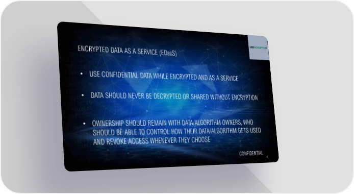 ENCRYPTED DATA AS A SERVICE (EDaaS) • USE CONFIDENTIAL DATA WHILE ENCRYPTED AND AS A SERVICE • DATA SHOULD NEVER BE DECRYPTED OR SHARED WITHOUT ENCRYPTION • OWNERSHIP SHOULD REMAIN WITH DATA/ALGORITHM OWNERS, WHO SHOULD BE ABLE TO CONTROL HOW THEIR DATA/ALGORITHM GETS USED AND REVOKE ACCESS WHENEVER THEY CHOOSE CONFIDENTIAL 6